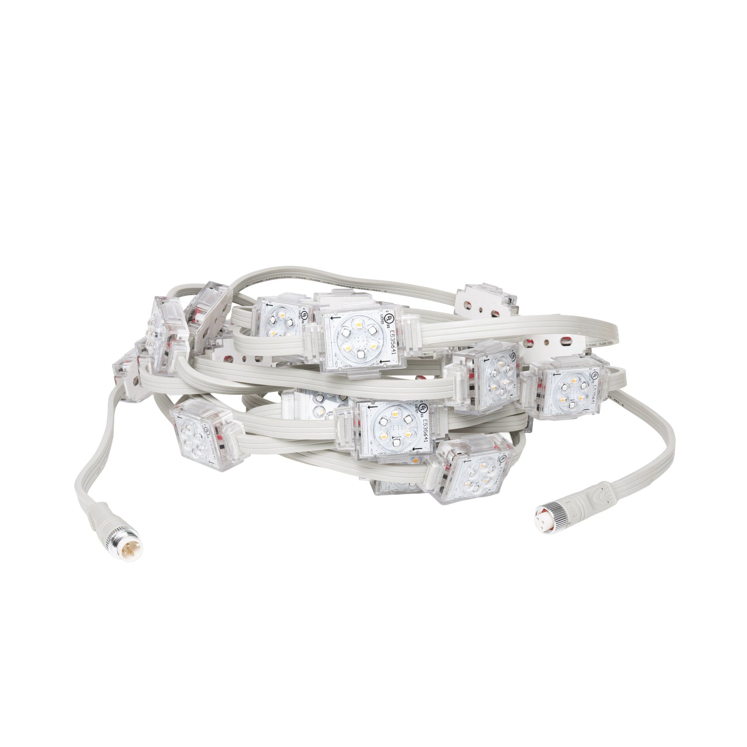 Designed for simplified installations, Chromaglow Pro operates on a 48V low voltage system, allowing up to 300 feet of continuous lighting with just one controller and transformer—no need for added power injection lines. This drastically reduces installation time and cost, especially compared to lower voltage systems. Each light uses advanced RGBW-IC technology with six LED chipsets: three for rich RGB colors and three dedicated to white, delivering customizable lighting and smooth warm-white tones ideal for both accent and architectural use. The robust 16 AWG wiring supports extension jumps up to 30 feet without signal loss, while built-in safeguards protect against reverse connections. Wire can be custom cut to length and connected with a Chromaglow Pro Quick Connector.
