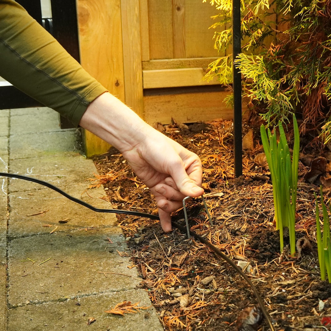 Ensure a professional, neat installation with Lawn Staples. Perfect for keeping extension cords tidy and preventing trip hazards. Staples are stiff 3mm galvanized steel, and can be reused season after season.