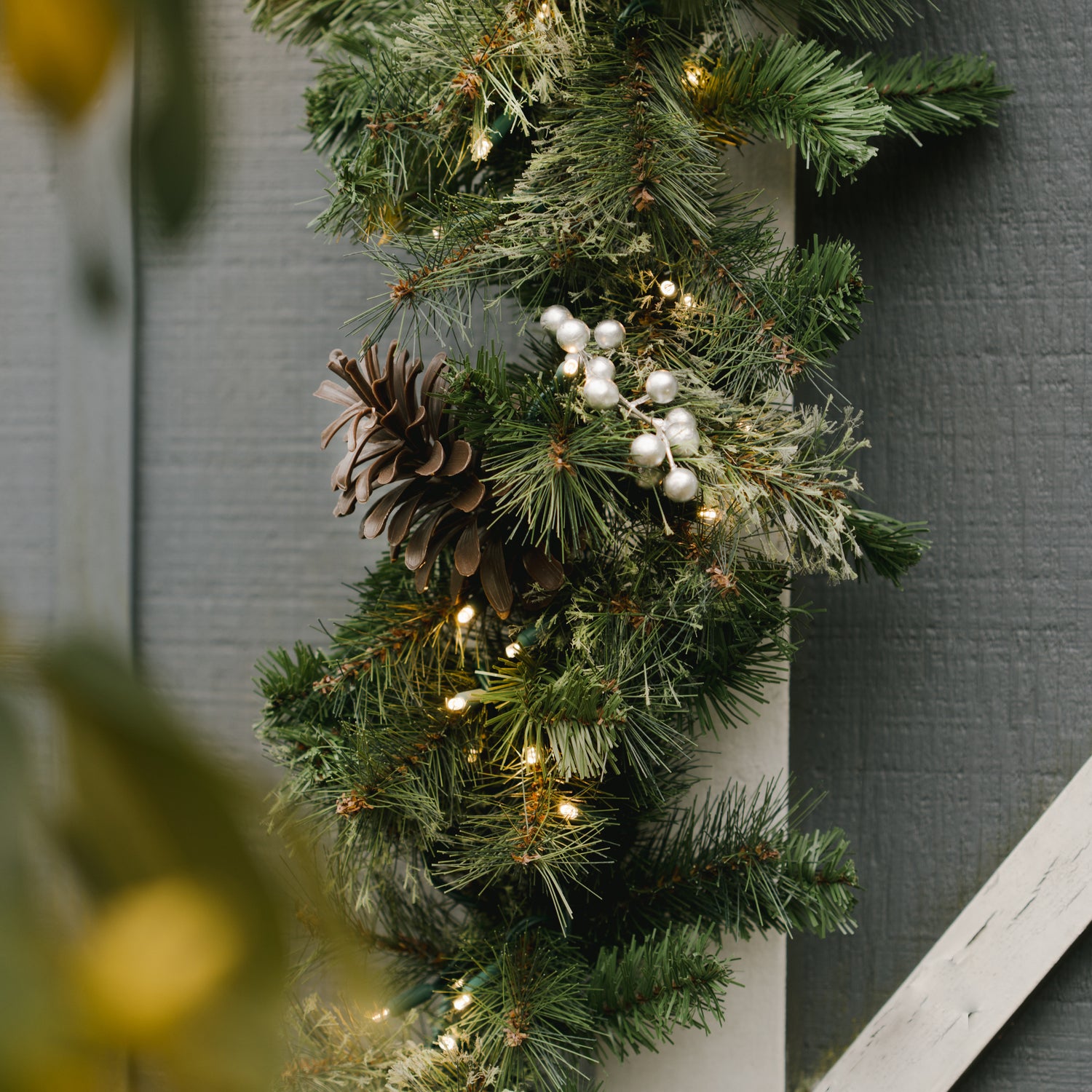 This classic Lit Garland features  berries, pine cones, and Warm White Mini Lights.