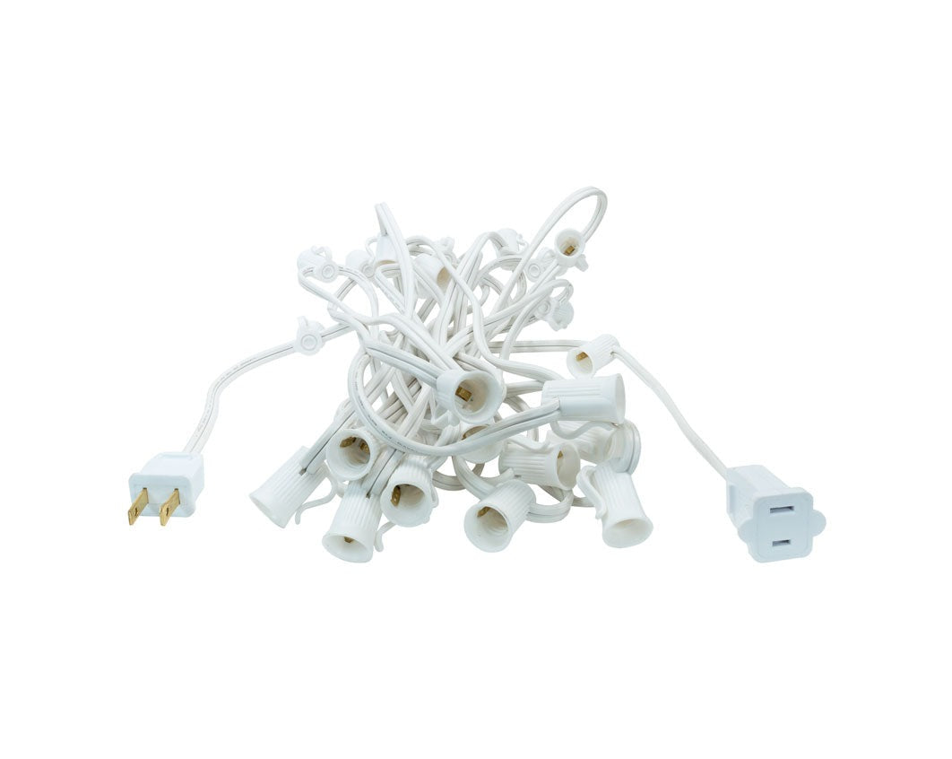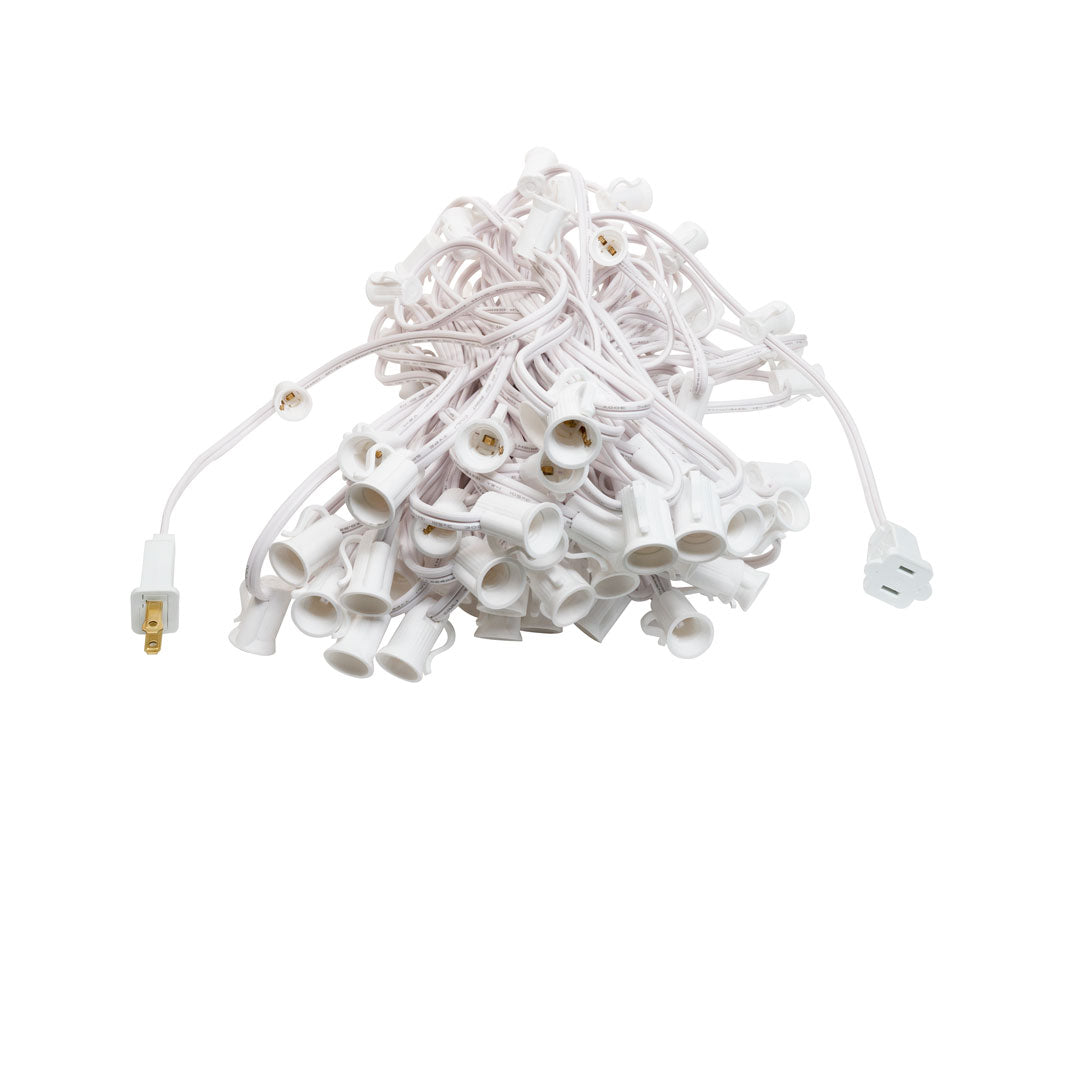 Designed for durability, this commercial grade wire boasts thick insulation, ensuring your lights shine bright even in rain or snow. Ideal for outdoor use, the inbuilt drainage system prevents water pooling and allows for ventilation, further enhancing longevity. E12 Base wire is suitable for C7 & G20 bulbs. Available in 12-inch spacing, the industry standard for rooflines and also perfect for wrapping large trees. For those seeking a more densely lit display, the 6-inch spacing option is ideal.