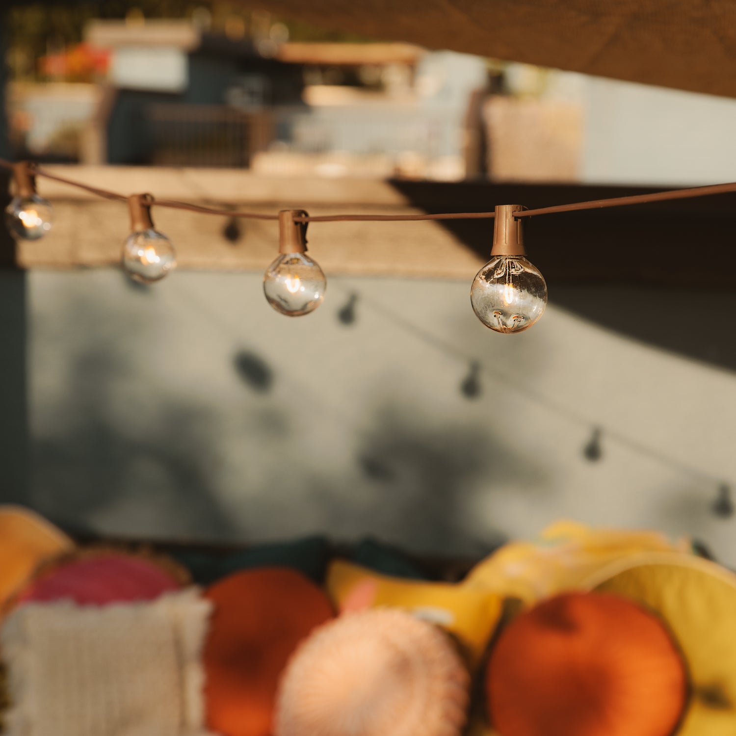 Elevate your outdoor space with these beautiful G50 festoon lights, perfect for summer events, patios, restaurants, or anytime you'd like to set an ambient mood. Replicate the look of old-school filament bulbs, but without the high energy consumption or heat output. LED filament bulbs are the perfect blend of vintage aesthetics and modern efficiency. The polycarbonate lens looks just like a glass bulb but won't shatter on impact! Featuring high-quality components and anti-corrosion, moisture-resistant design features, these G50 festoon lights are built to withstand the elements, making them ideal for outdoor use.