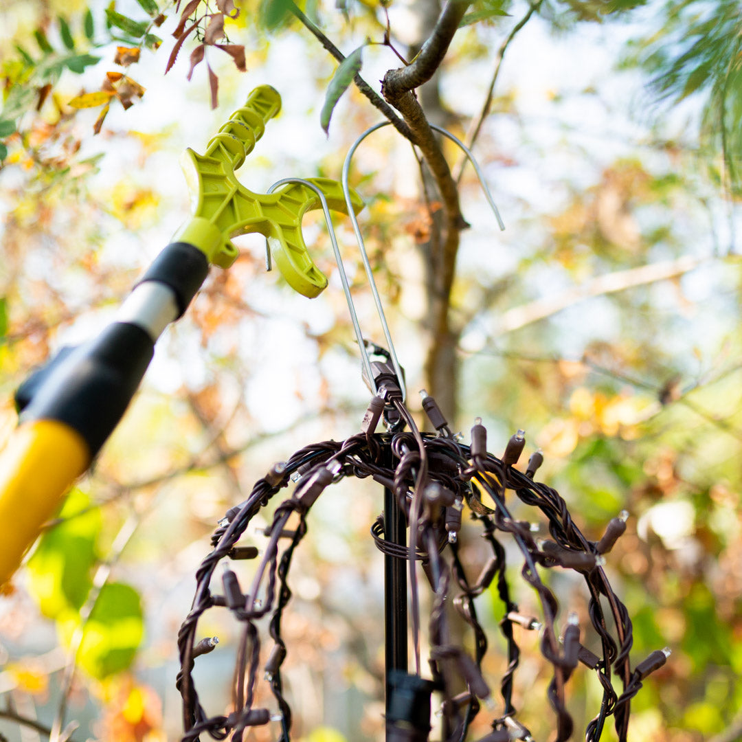 Galvanized steel hooks for hanging decor in trees. Save time and make decorating safer by hanging your decor, like ornaments in a tree, with Easy Peasy hooks and an installation pole.