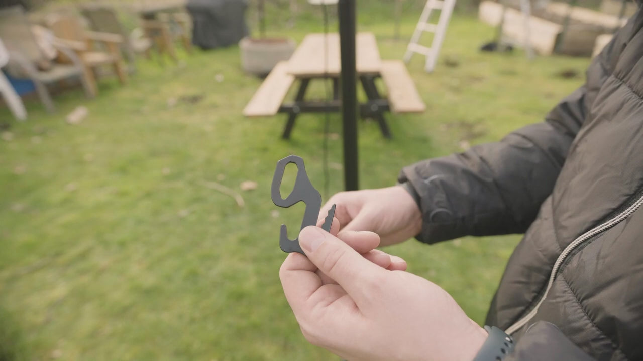 Ensure your posts are secure with this adjustable guy line. Designed to attach from posts to ground stakes, the aluminum self-cleating adjustment device allows for easy tensioning with no need for knots! The 5mm low stretch polyester rope pulls optimal tension on, available in 25ft lengths.