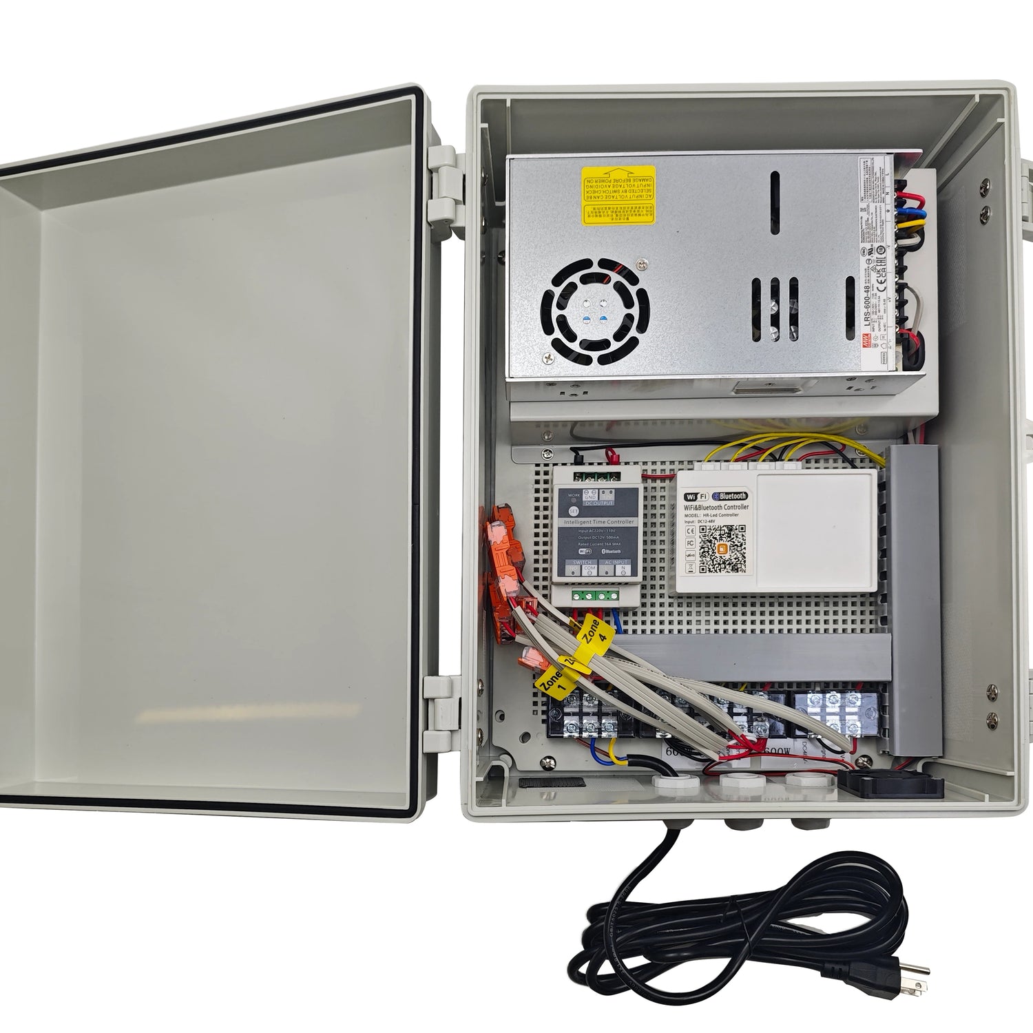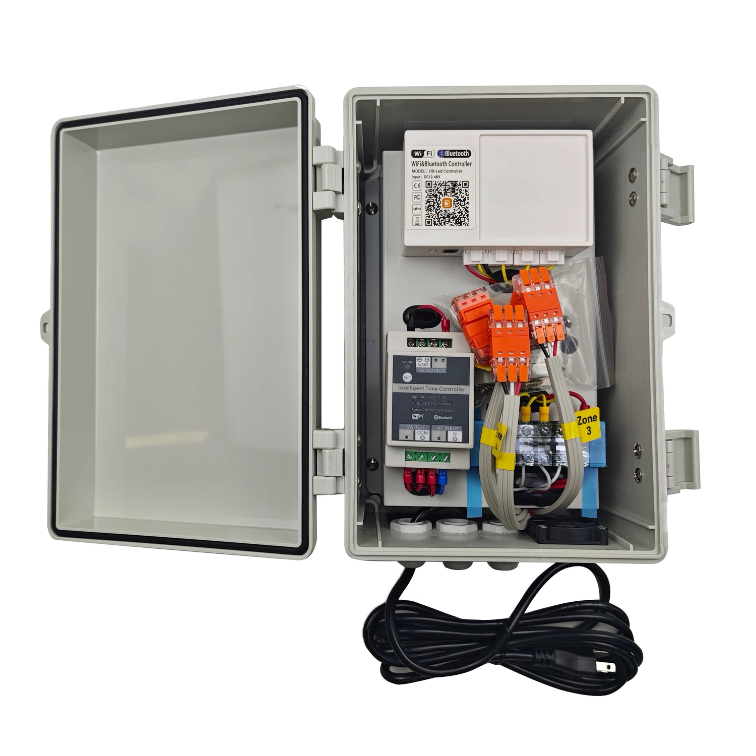 Watertight outdoor control box with power supply, app control + timer