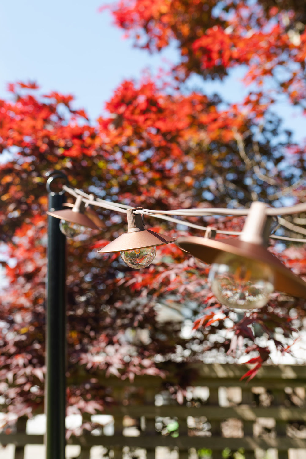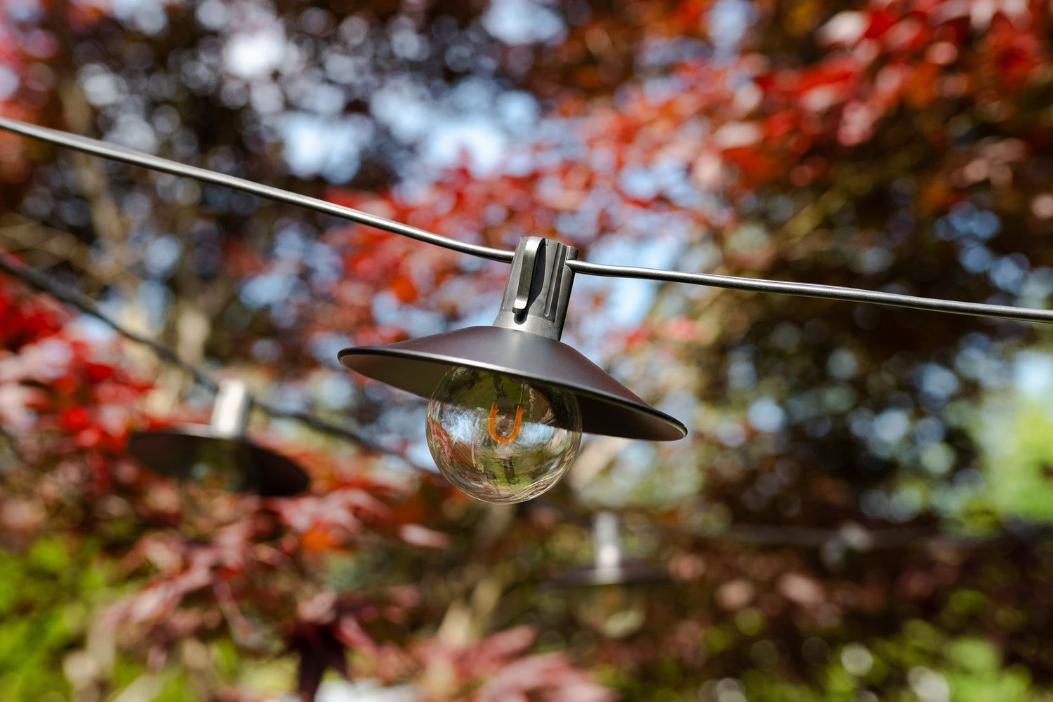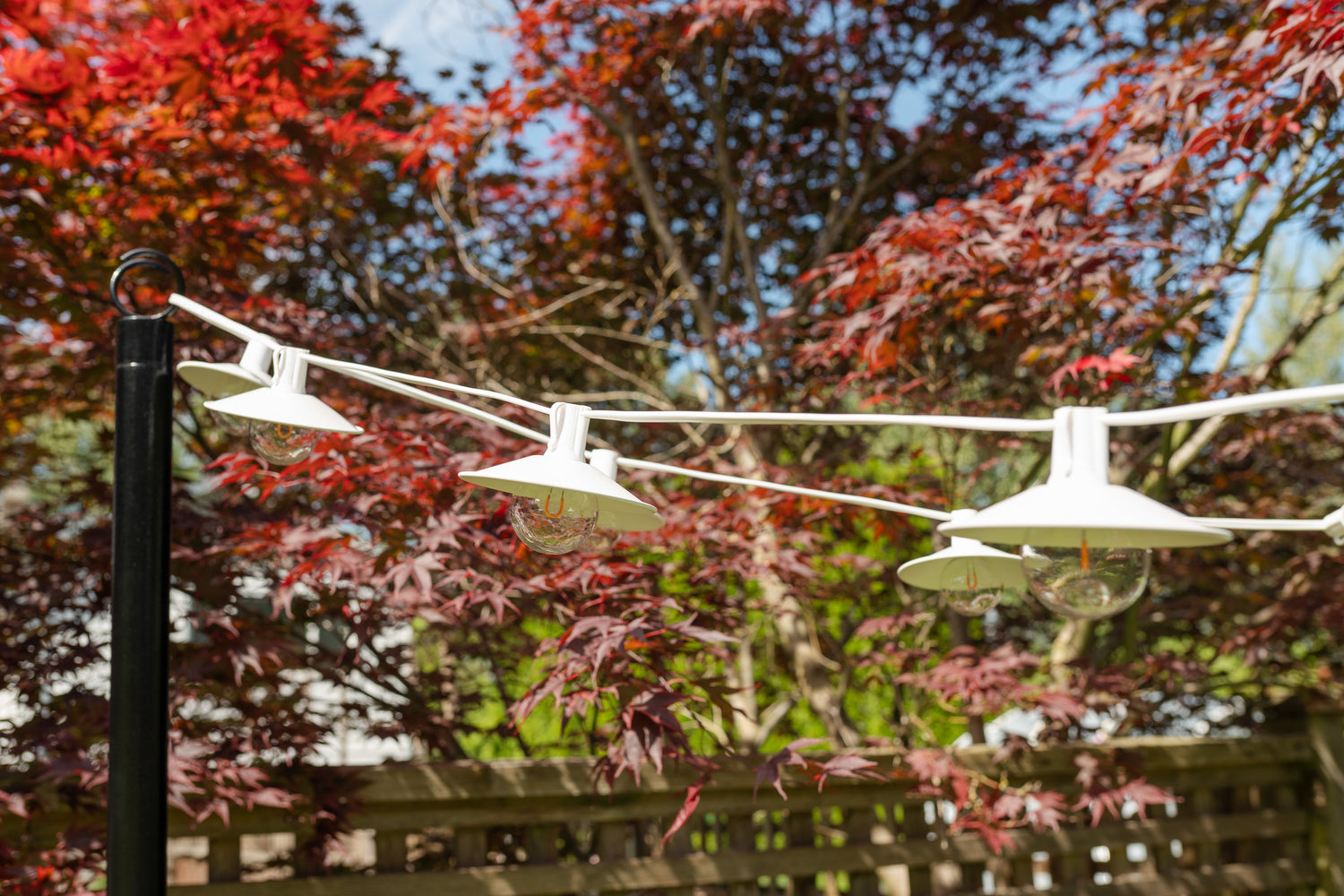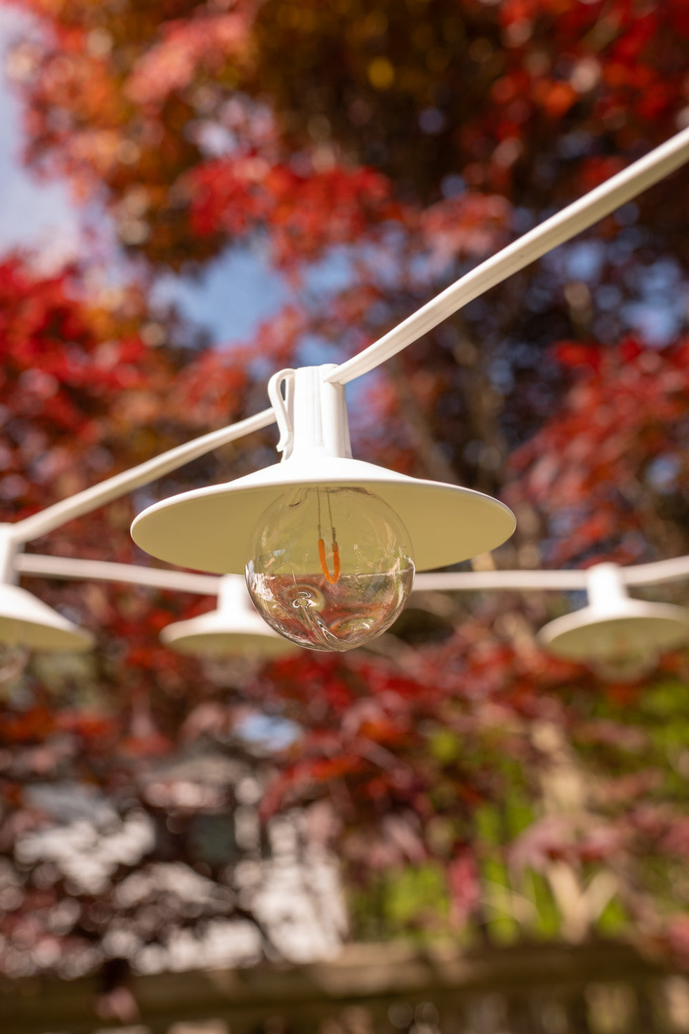 Achieve a classic bistro lighting style with the addition of these attractive metal shades on your patio light wire. Paired with our G30 bulbs, these shades create a nostalgic atmosphere that's perfect for your back deck or a restaurant patio. They direct more light downward, keeping your outdoor areas well lit and your animal neighbours sleeping at night. The white shades are a perfect addition to wedding lighting, the bronze gives a classic rustic feel, and the black creates a more modern look.