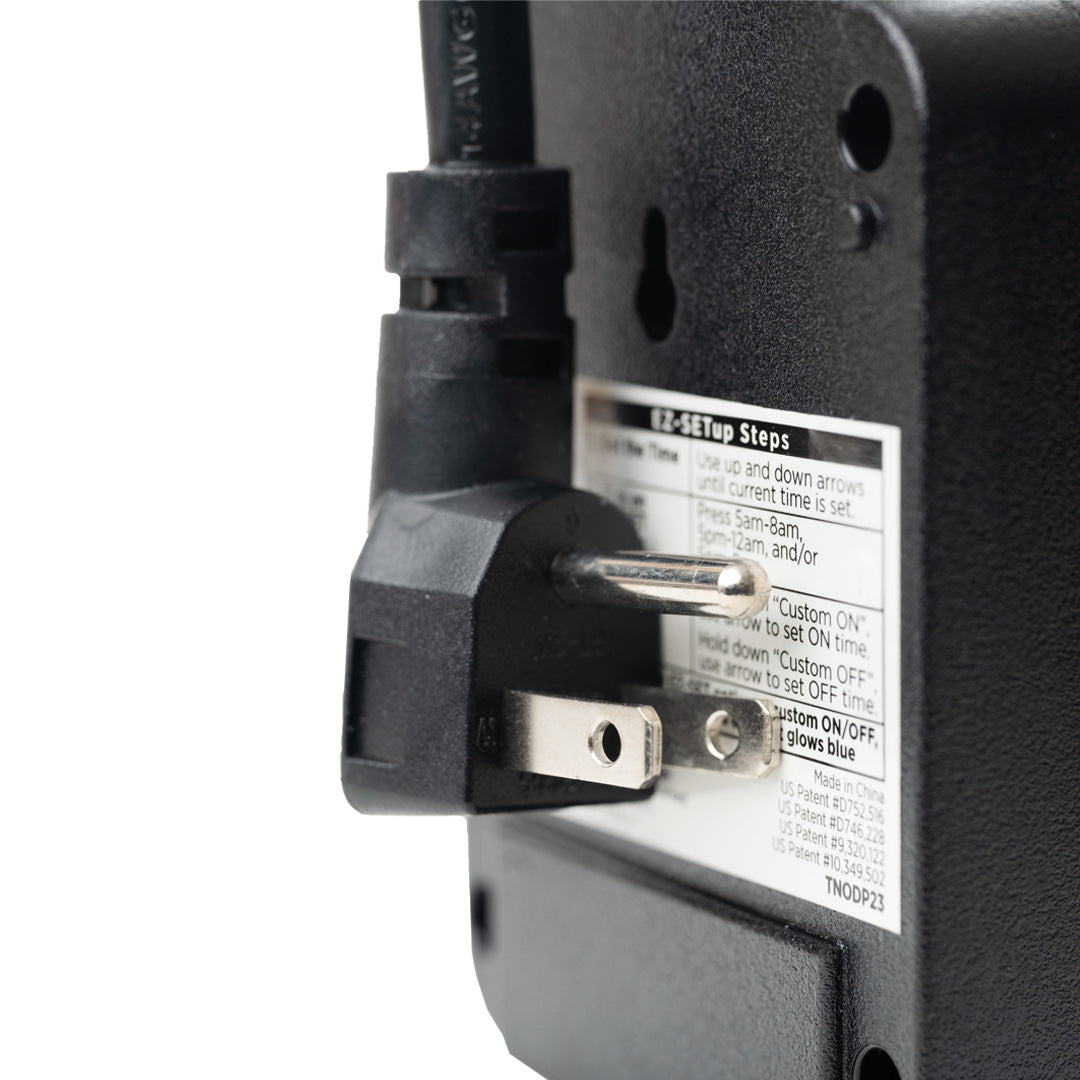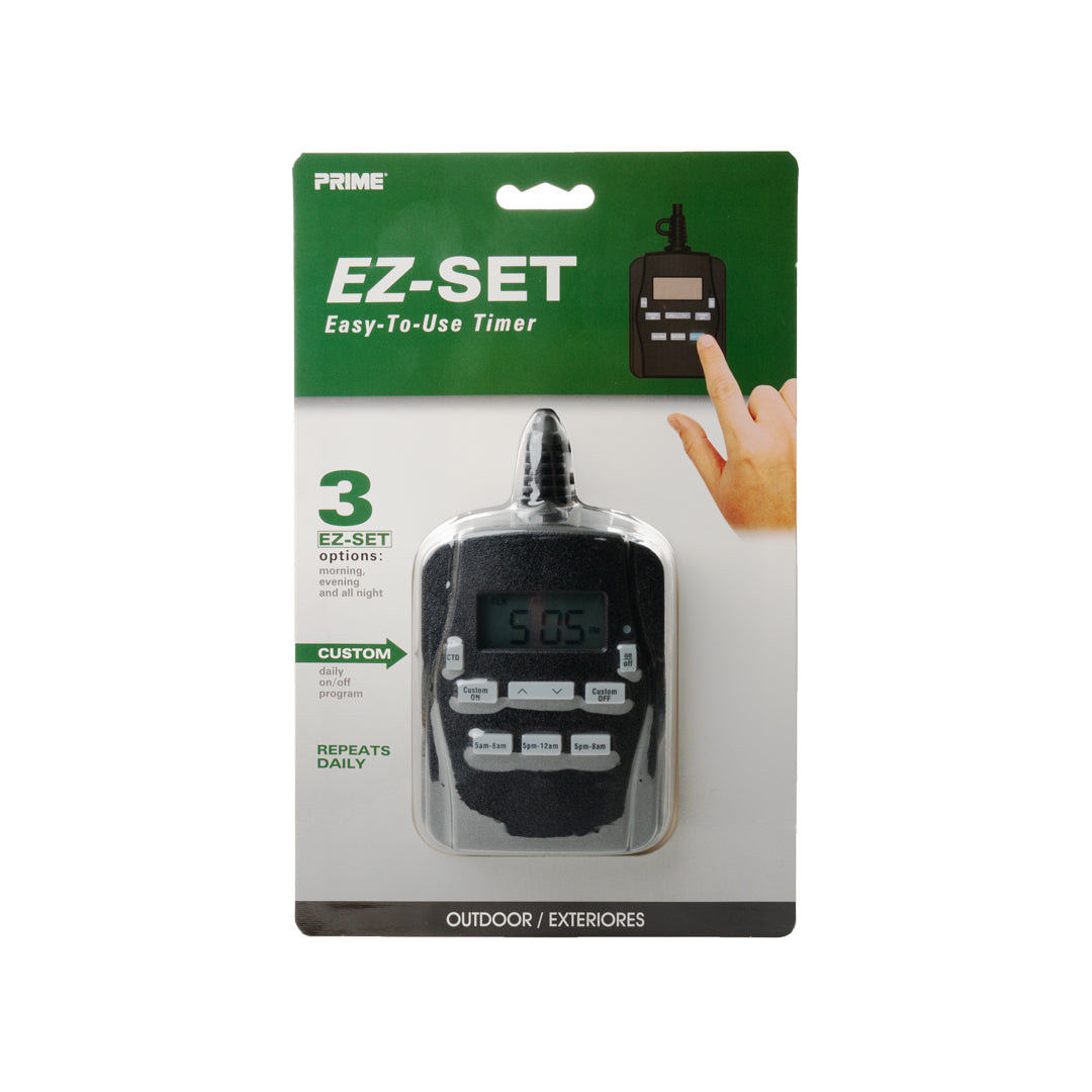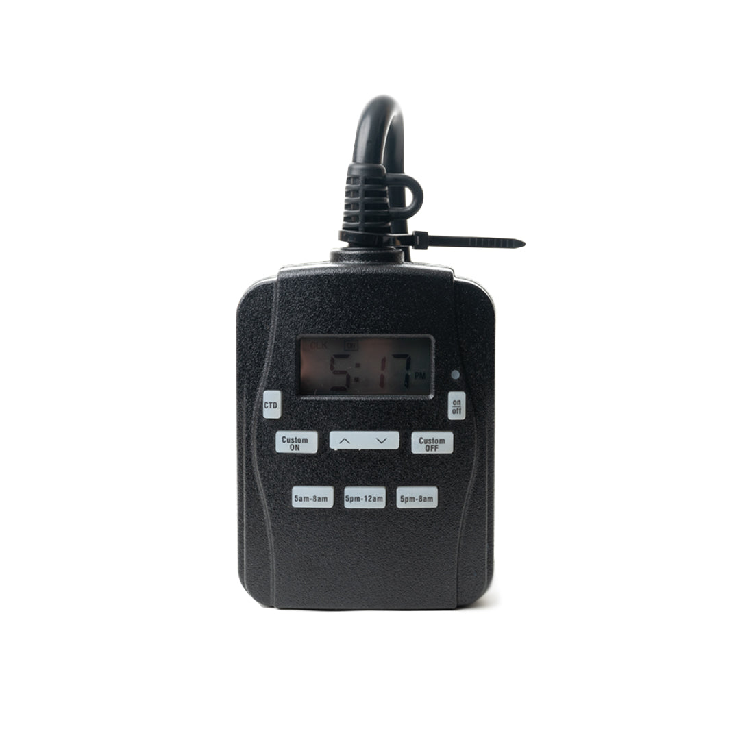 Simplify your holiday lighting with this versatile outdoor timer. Designed for convenience, it offers three preset time modes (5 AM–8 AM, 5 PM–12 AM, and 5 PM–8 AM) and a customizable option to suit your schedule. Programming is quick and easy—just set the current time, choose your preferred mode, and let the timer handle the rest. Whether you're brightening early mornings or lighting up festive evenings, this timer ensures your display shines when you want it to, without the hassle.This timer has battery backup. In the event power is turned off, it will resume the set program after power is restored.